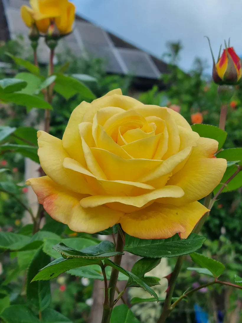 Floribunda rose with clusters of large yellow blooms that fade to cream. Good fragrance with an upright habit. Good healthy foliage.