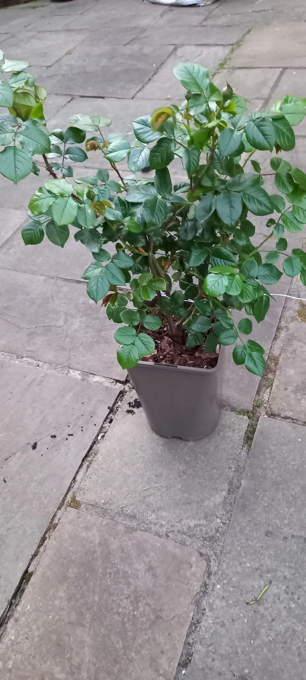 In spring our roses will still be very small to look at but will have rooted into the pot and will be showing strong young growth.