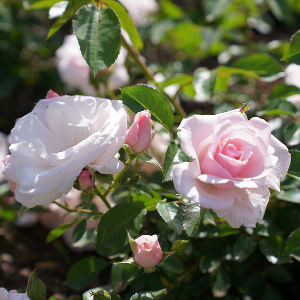 Floribunda rose with clusters of lightly scented semi-double flowers of soft pink produced in clusters through the summer. Ideal rose to give as a gift