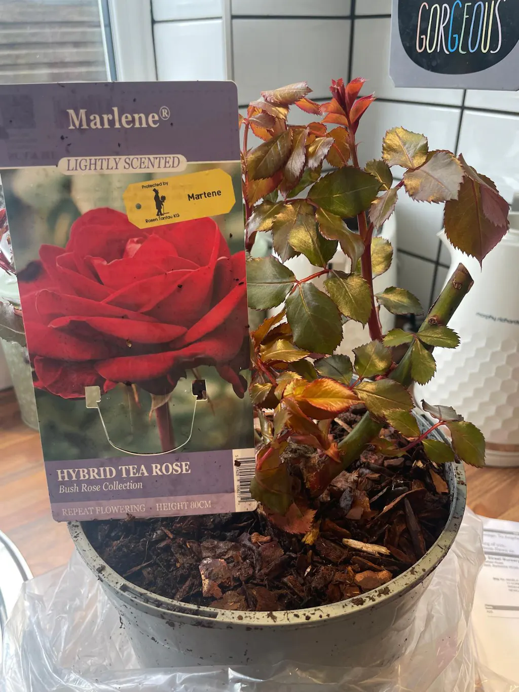 My friend was over the moon with the rose bush, as she has just recently lost her mother (Marlene).