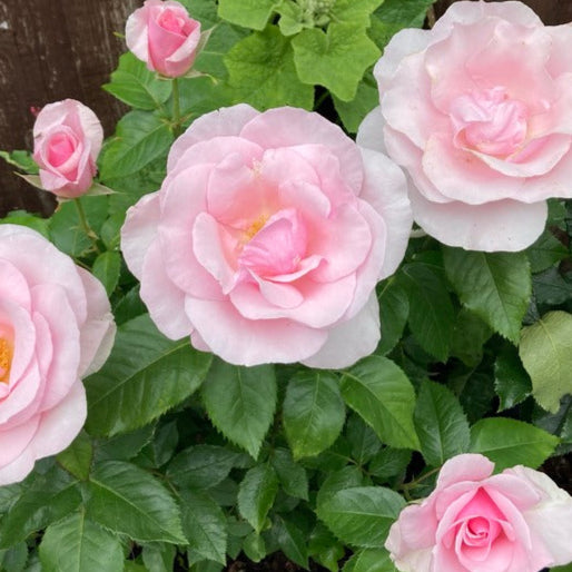 Floribunda rose with clusters of light pink flowers with a good fragrance produced through the summer till the autumn. Bushy habit with healthy foliage.