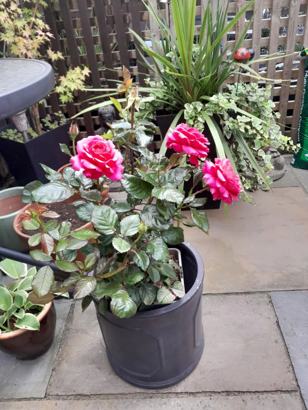 In spring our roses will still be very small to look at but will have rooted into the pot and will be showing strong young growth.